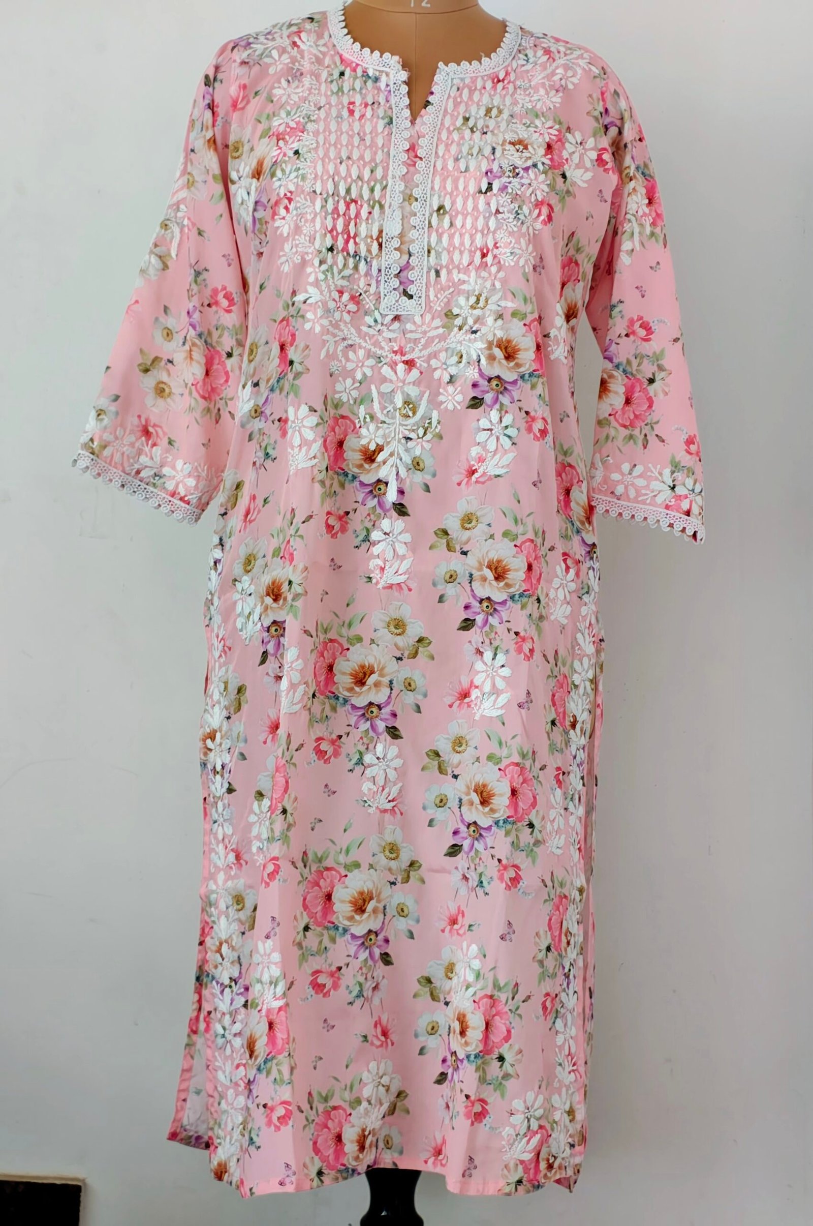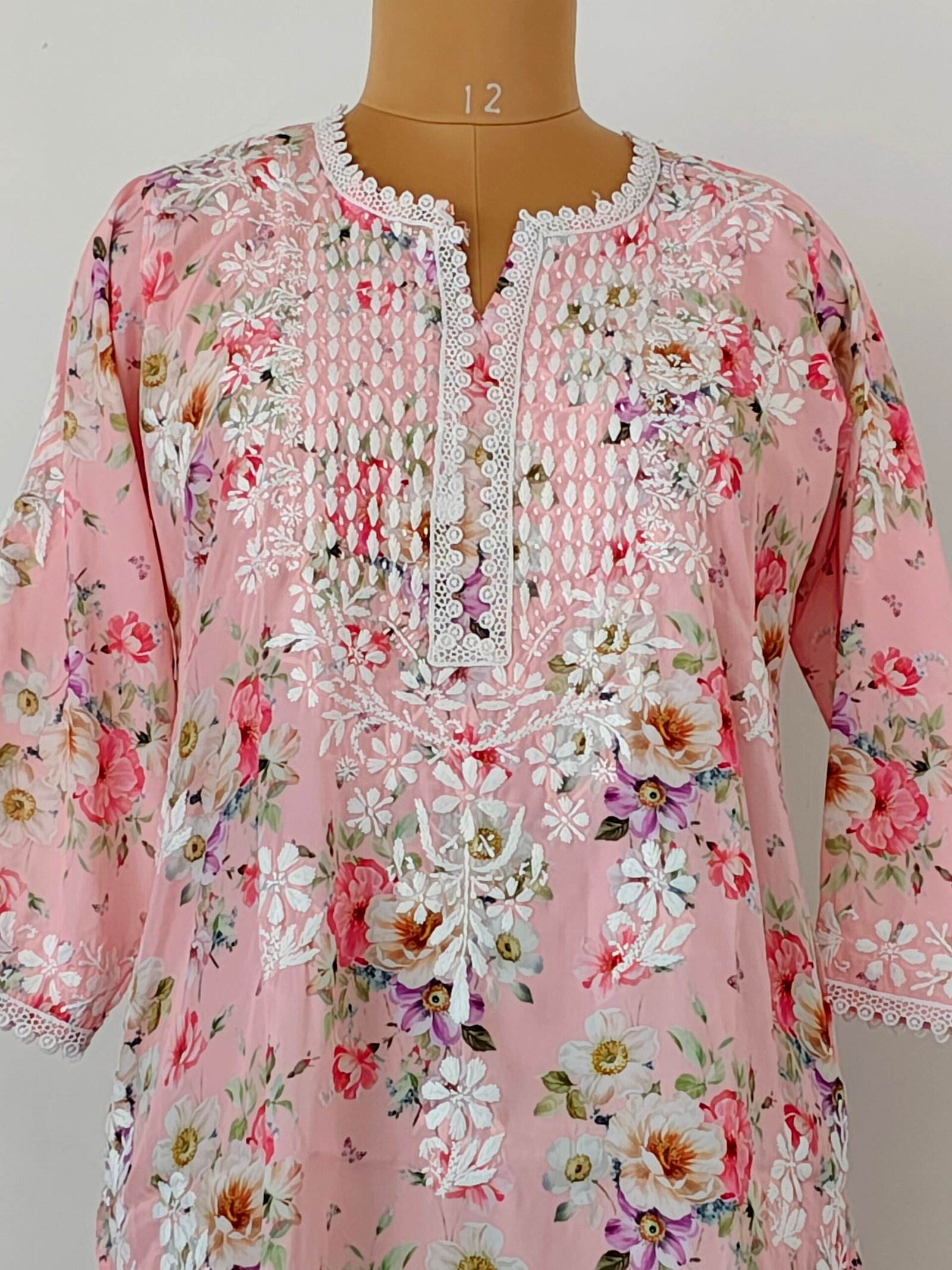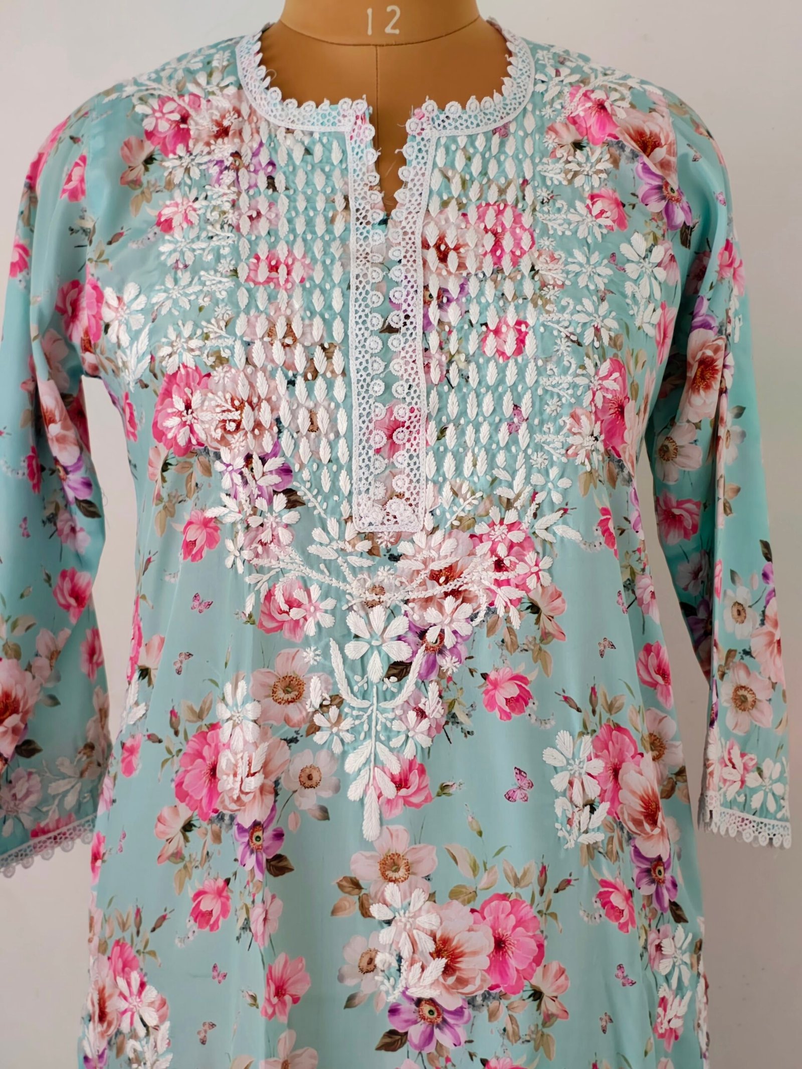 Embrace style and comfort with our floral printed crepe chikankari women’s kurta. This exquisite piece showcases a blend of traditional craftsmanship and contemporary design, making it perfect for all occasions.